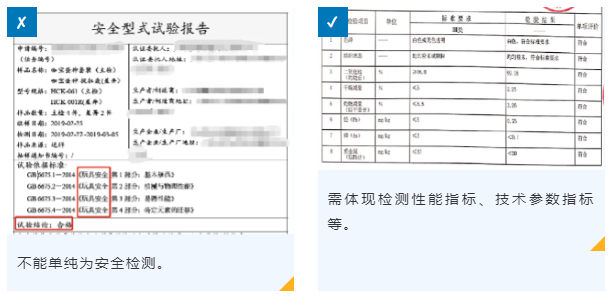 3.檢測(cè)報(bào)告需體現(xiàn)檢測(cè)性能指標(biāo)、技術(shù)參數(shù)指標(biāo)等,不能單純?yōu)楫a(chǎn)品功能檢測(cè)、安全檢測(cè)等,產(chǎn)品檢測(cè)指標(biāo)的結(jié)果要高于標(biāo)準(zhǔn)。如下圖: