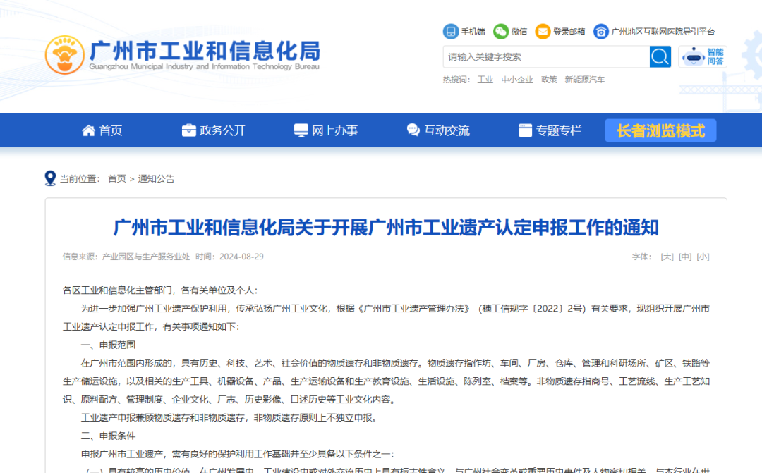 廣州市工業(yè)和信息化局關(guān)于開展廣州市工業(yè)遺產(chǎn)認(rèn)定申報(bào)工作的通知