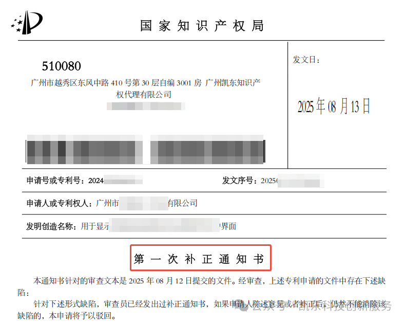 2.被動補正:審查員在初審階段發(fā)現(xiàn)問題,通過《補正通知書》要求限期修正(占絕大多數(shù))。
