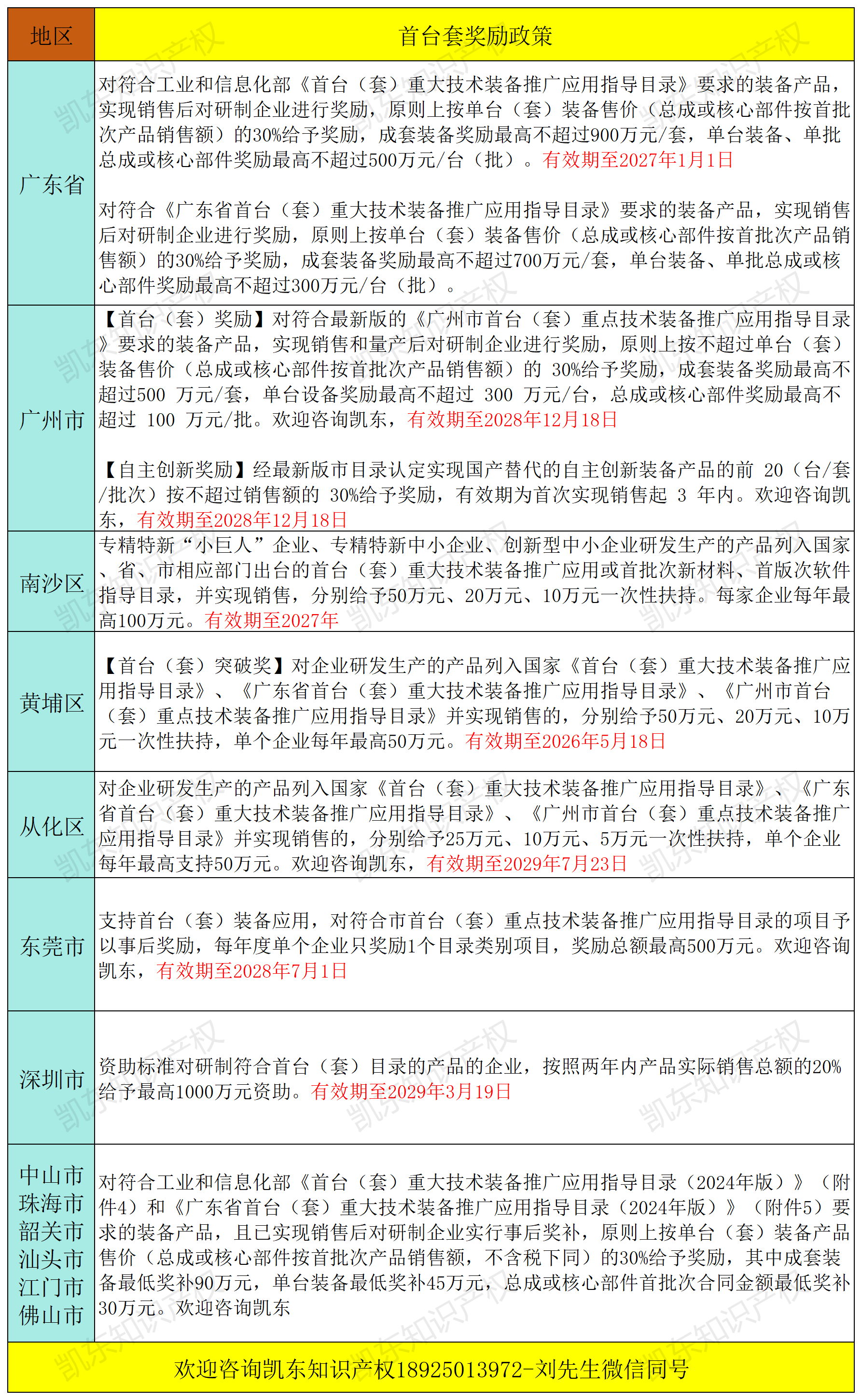 小編精心整理了廣東省首臺(tái)套申報(bào)獎(jiǎng)勵(lì)政策匯總(見(jiàn)下圖),為已提交申請(qǐng)的企業(yè)以及計(jì)劃在2026年申報(bào)首臺(tái)套的企業(yè)提供參考。若圖片中未涵蓋相關(guān)地區(qū)的獎(jiǎng)勵(lì)政策,可向凱東知識(shí)產(chǎn)權(quán)咨詢了解。02申報(bào)首臺(tái)(套)的裝備產(chǎn)品應(yīng)滿足以下條件: