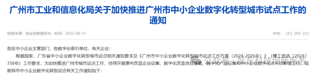 廣州市中小企業(yè)數(shù)字化轉(zhuǎn)型迎來新機遇!為貫徹落實國家及廣東省關于中小企業(yè)數(shù)字化轉(zhuǎn)型城市試點的工作要求,廣州市工業(yè)和信息化局近日印發(fā)通知,全面推動智能網(wǎng)聯(lián)與新能源汽車(零部件)、工業(yè)母機和機器人、時尚美妝、定制家居、服裝、箱包六個細分行業(yè)的制造業(yè)中小企業(yè)開展數(shù)字化改造。
