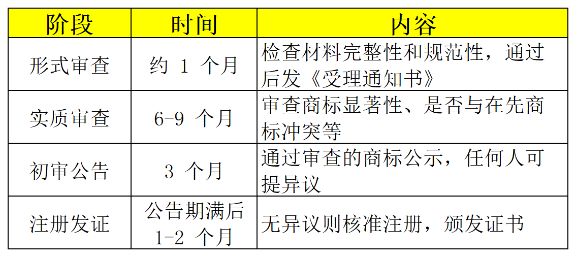 注:2025 年實施《商標(biāo)注冊申請快速審查辦法》,戰(zhàn)略性新興產(chǎn)業(yè)可享 "135 工作制"(1 個月形式審查、3 個月實質(zhì)審查、5 個月全流程完結(jié))