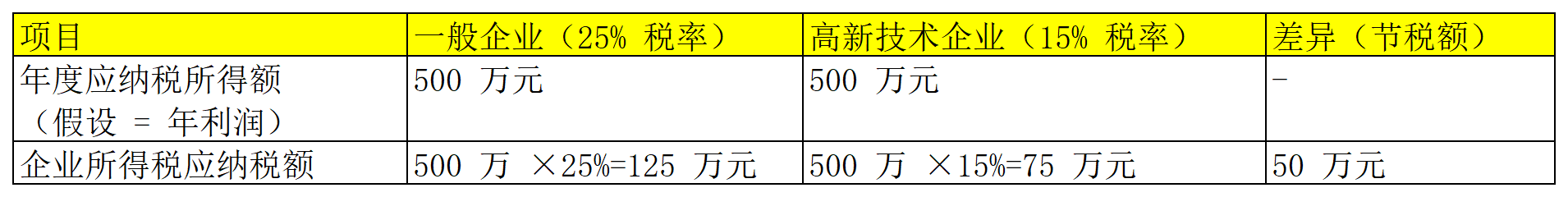 沒(méi)錯(cuò),單看企業(yè)所得稅這一項(xiàng),年利 500 萬(wàn)的企業(yè),評(píng)上高企后每年能直接省 50 萬(wàn)!這 50 萬(wàn)可能是小公司半年的人力成本,也可能是一輪新產(chǎn)品的研發(fā)經(jīng)費(fèi),對(duì)企業(yè)來(lái)說(shuō)可不是 “小錢”。