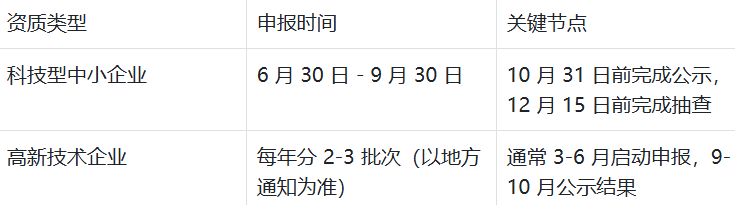 - 初創(chuàng)期企業(yè)(營收<5000 萬、知識產權少):先申報 科技型中小企業(yè) → 積累研發(fā)數據和信用記錄 → 2-3 年后沖刺高新技術企業(yè);
