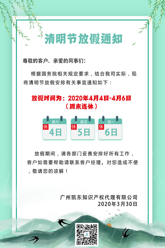 廣州凱東公司關于2020年清明節(jié)放假安排的通知